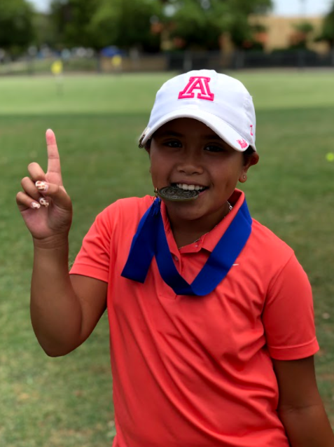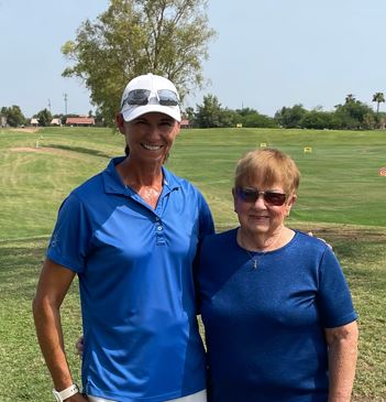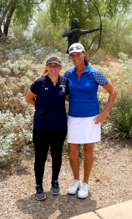 With Rianna, who will be a sophomore this year and South Dakota School of Mines and the top player on her golf team. Her encouragement and willingness to play many rounds in the heat was unbelievable! Thank you Rianna! |